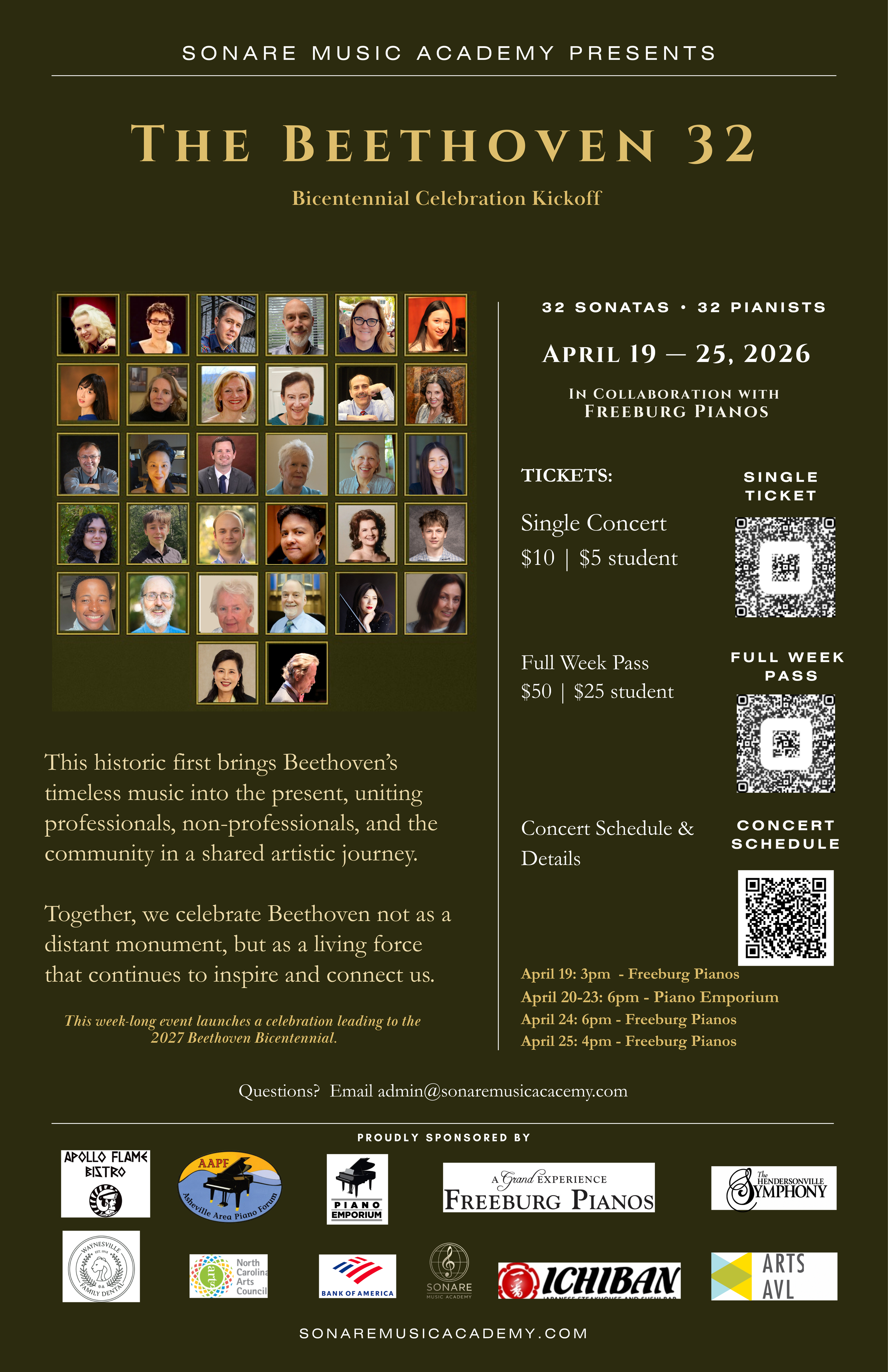 Sonare Music Academy, under the artistic direction of Dr. Hwa-Jin Kim, proudly presents The Beethoven 32 Concert, in collaboration with Freeburg Pianos.